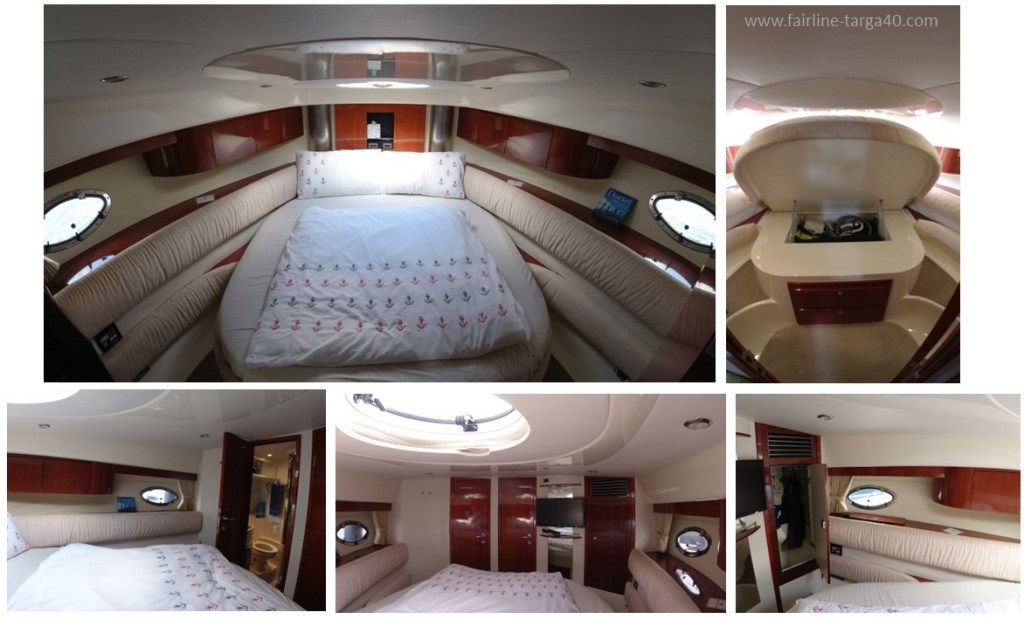 - Storage under forward bed. The 2 drawers are easily seen but there is a large locker accessed by lifting up the bed. There is also a small locker/recess at the bow end, under the mattress. Requires cleaning to prevent mould at least once a season.